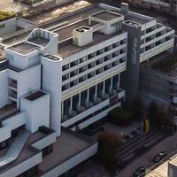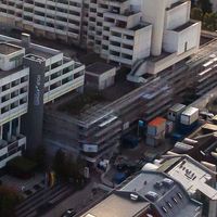 Geburtsort des Biergartens und Brückenkopf des Münchner Brutalismus: Das Karree rechts oberhalb der Theresienwiese ist seit jeher ein Ort, der einen prominenten Platz im Stadtbild und in der Geschichte Münchens einnimmt. Wo einst entlang der Isarterrasse kühles Bier aus den Eiskellern der Brauereien ausgeschenkt wurde, entstand bis 1975 ein für damalige Verhältnisse architektonisch progressives Quartier als Teil des einstigen Arbeiterviertels. Heute ist das revitalisierte „Betongebirge“ lebendiger denn je und ein modernes Aushängeschild des boomenden Westends.